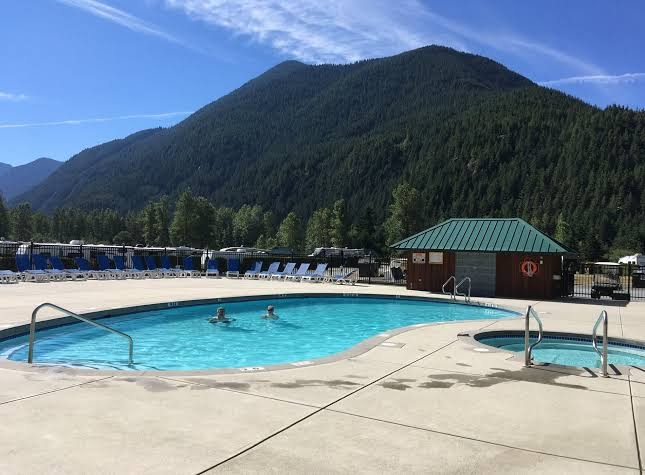 Wonderful campsite (and RV / cabin resort) in Sunshine Valley just a short drive east of Hope. Nestled in the grandeur of the mountains, what fantastic vistas to fall asleep and wake up to. Fully serviced with indoor / outdoor pools and hot tubs, as well as bathrooms and pay showers, store, propane refills. Would be absolutely perfect for families. Great for long stays as well. Super clean and safe, with excellent management and staff. [Update: We more recently stayed in one of the cabins - cozy yet spacious with all the usual cabin comforts. The entire property is meticulously cleaned, well serviced, and regularly patrolled.]